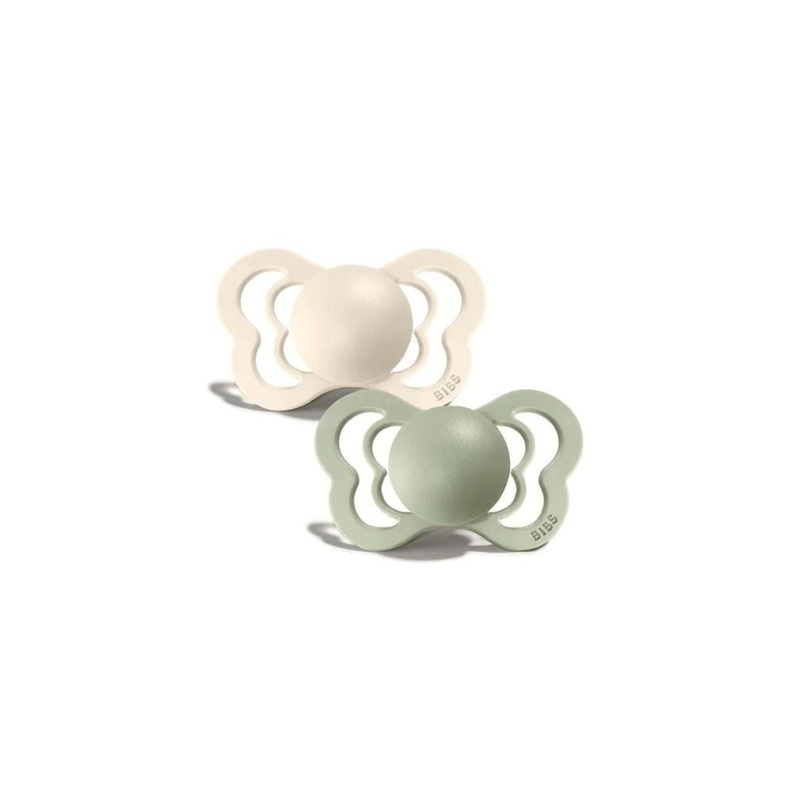 BIBS Couture 2 Pack Ivory/Sage Silcone Pacifier 0-6 Months