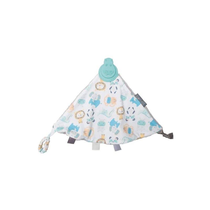 The attached signature hippo teether is designed to massage and soothe those tender little gums and is 100% safe to chew.
