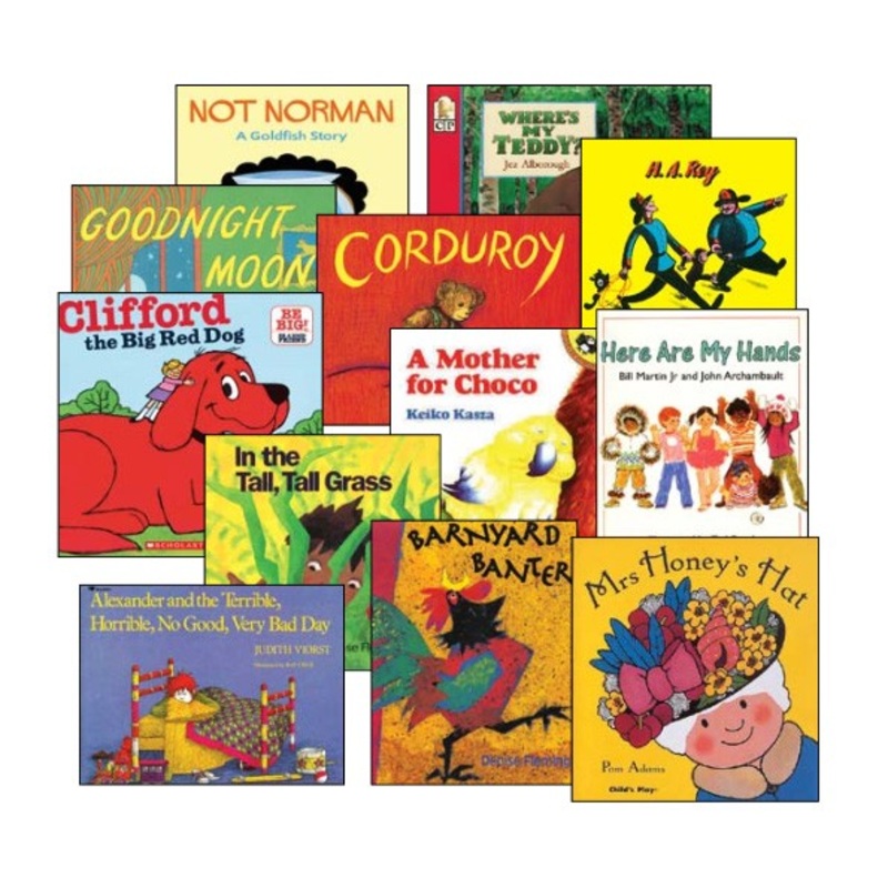 Popular classroom favorites in paperback format! Set of 12 paperback books.Titles include:Not Norman A Goldfish Story by Kelly BennettGoodnight Moon by Margaret Wise BrownCorduroy by Don FreemanClifford the Big Red Dog by Norman BridwellIn the Tall, Tall G