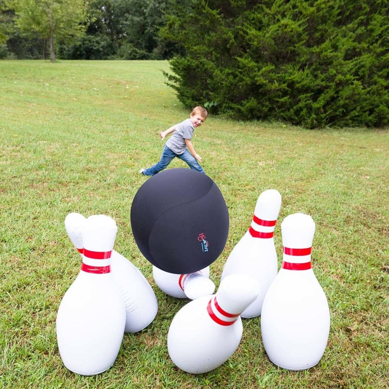 Turn regular bowling into JUMBO fun with oversize inflatable piecesPlay almost anywhere, any timeperfect for indoors or outdoorsEndless ways to playthrow, kick, or roll ballEasily inflate with our hand-operated Dual-Action Pump or Electric Pump (both sold