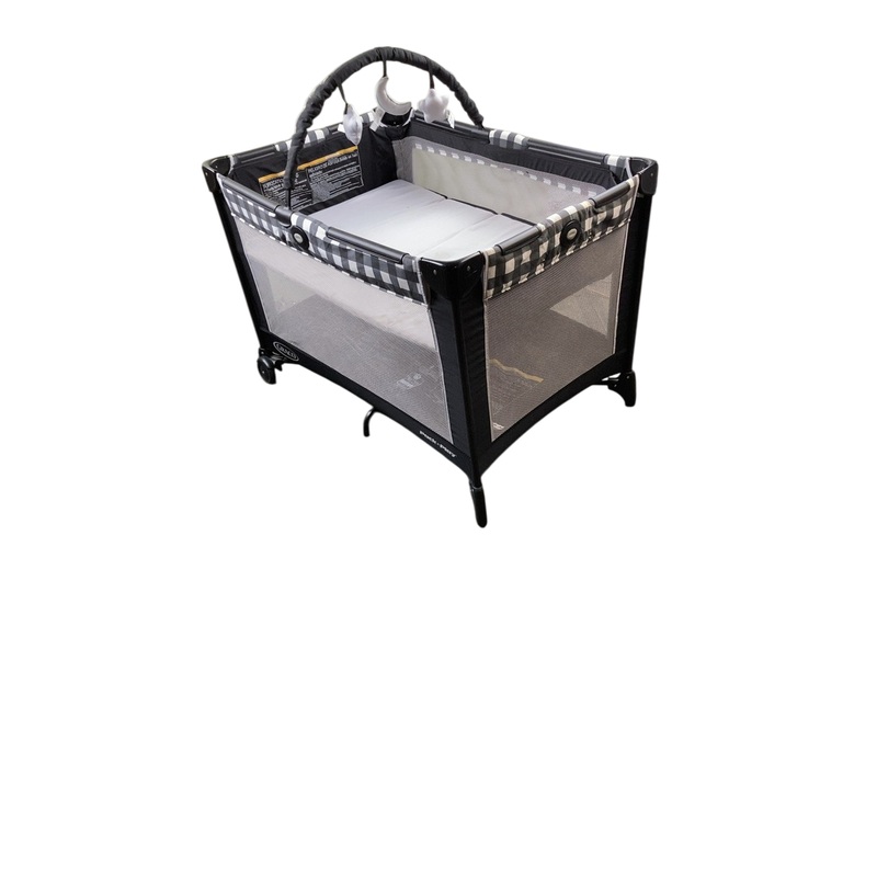 Condition: Gently Used This unique Pack 'n Play features folding feet and wheels for 20% more compact fold than other Graco playards. The full-size infant bassinet provides an easy-to-reach and easy-to-view spot for your baby to sleep. Make sure your littl