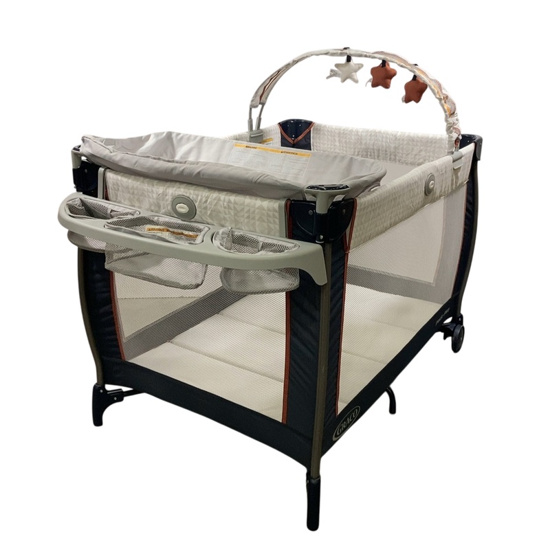 Condition: Loved Designed to grow with your little one, this will become an essential take along for any trip! Featuring a lift-out infant bassinet that converts into a tummy time mat, storage organizer and so much more.