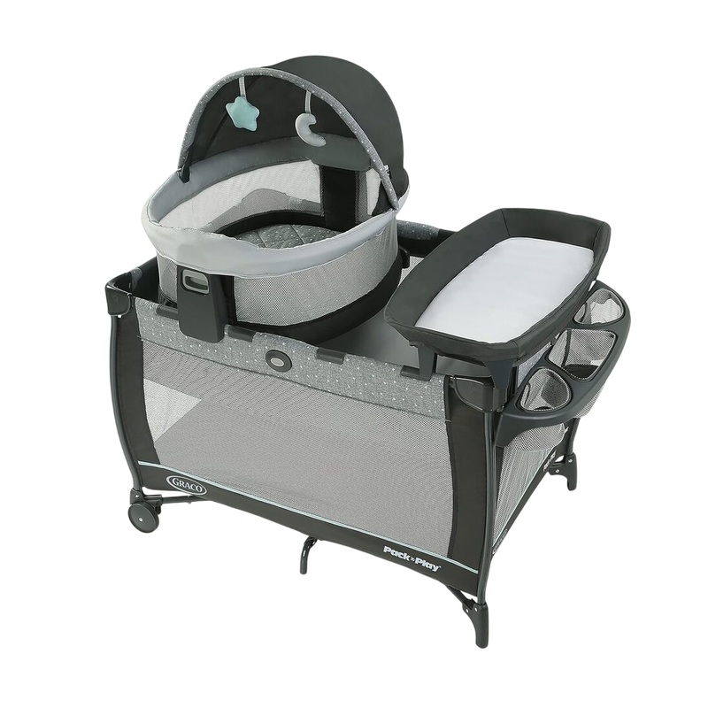 This Graco Pack ‘n Play offers the comfort of a cozy dome bassinet for your newborn which can be removed and taken wherever you need to go. When the dome is in the Pack ‘n Play it is at eye level, making it easy for you to see baby. The convenient diaper changer is wonderful for easy changes. This playard is designed to meet your child’s needs as they grow from a newborn to an infant to a toddler.