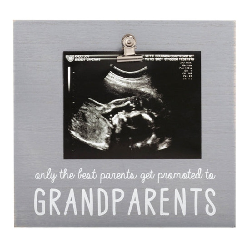 Pearheads sonogram frame is the perfect gift for new grandparents. This frame can be a fun pregnancy announcement or just a sweet and simple way to show your parents how much they mean to you. "Only the best parents get promoted to grandparents" is printed