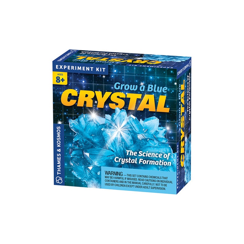 Grow sparkling, blue crystals overnight from a safe solution of potassium aluminum sulfate. Single out the largest crystal shard, redissolve the remaining crystals, and repeat the crystal formation process to grow a larger, more striking crystal. These kit