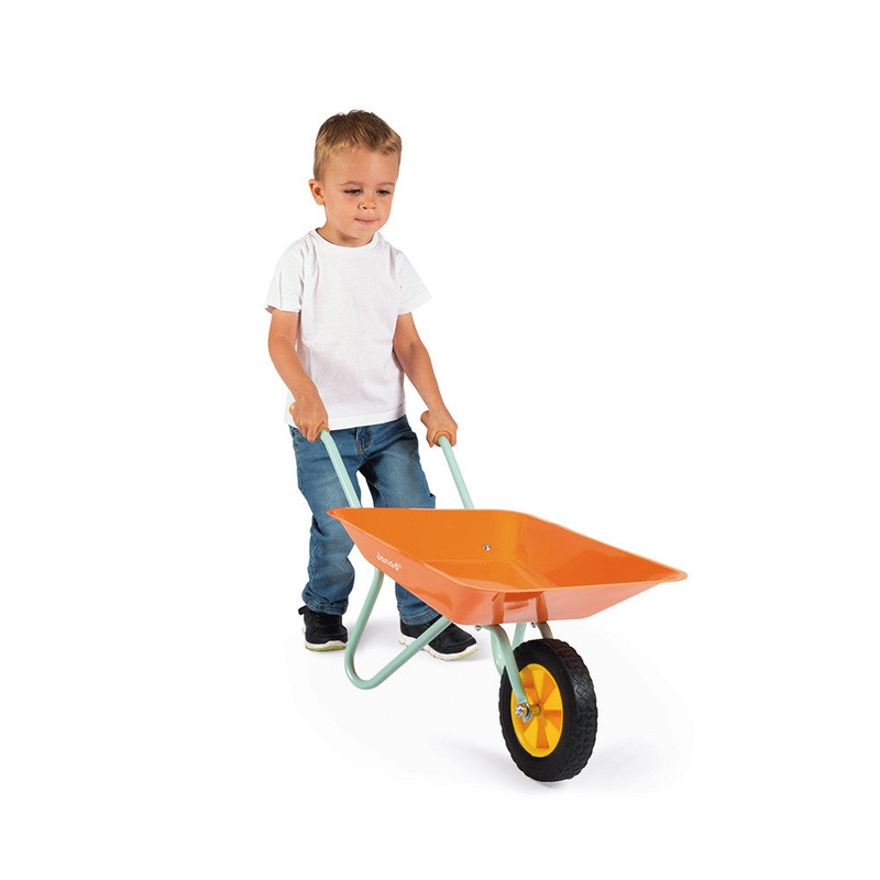 Note: We cannot ship this item. Local pickup/delivery only.Your child will become a real little gardener with this metal wheelbarrow. Its plastic wheel and side supports mean the wheelbarrow is strong and stable enough to carry small loads. The wooden hand