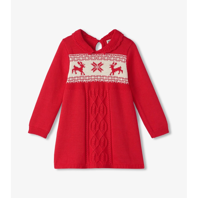 Nothing says holiday quite like Fair Isle! Featuring a cable knit fair isle knit design and peter pan collar. The keyhole detail on the back tops of this adorable dress. You and your little one are sure to love this holiday dress!