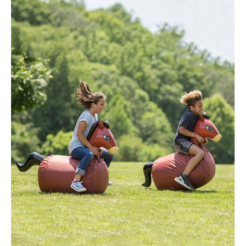 Saddle up, buckaroos! Set of two Inflatable Hop ‘n Go Horses means that you and a friend can hop, bump, and gallop across the open range.