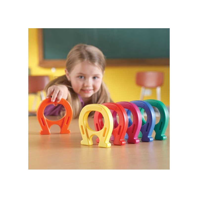 Where can you make the magnet stick? How does it work? For these kinds of discussions and more, use these durable, plastic horseshoe-shaped magnets. Magnetically correct: one foot north and one foot south. Set of 6 durable, plastic horseshoe-shaped magnets come in a rainbow of colors.