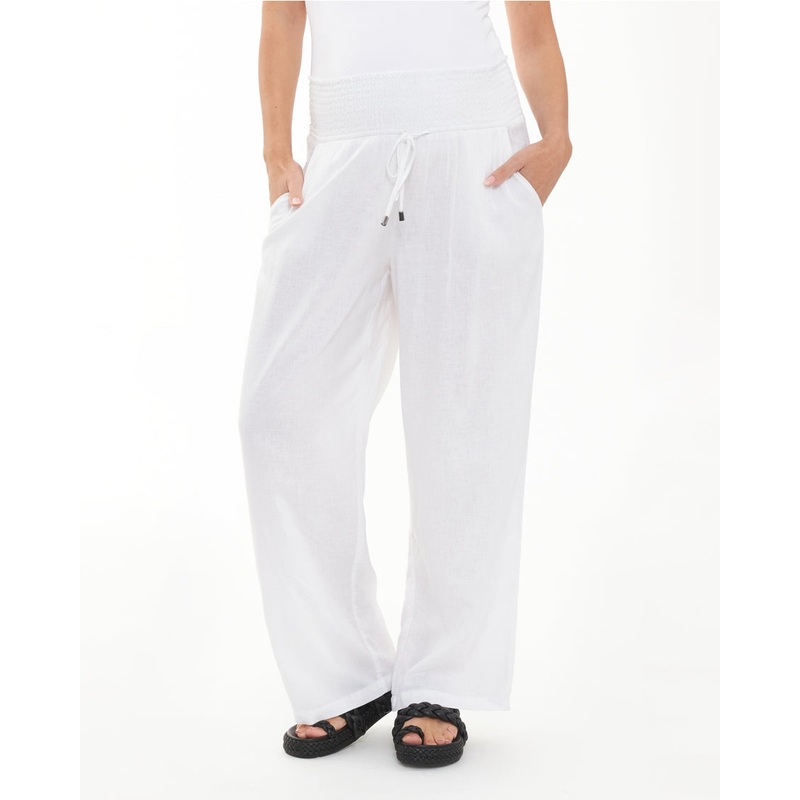 These pants are a must-have for warm-weather wardrobes. Crafted from a soft linen blend, the pants feature an easy to pull-on and comfortable shirred waistband that ensures they will be on high rotation throughout pregnancy and as you recover postpartum. Complete with side pockets, and adjustable draw string. Form an effortless look with slides or sneakers and wear these all day, every day.