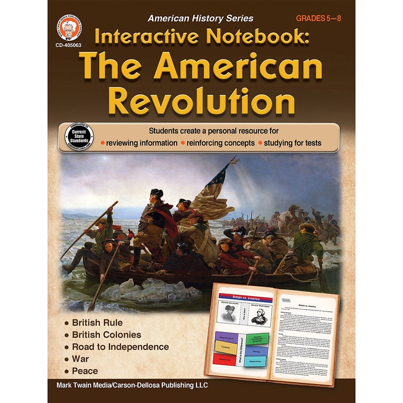 Encourage students to create their own learning portfolios with the Mark Twain Interactive Notebook: The American Revolution for grades 58. This 64-page interactive notebook includes 19 lessons that cover five units of study: British Rule, British Colonies