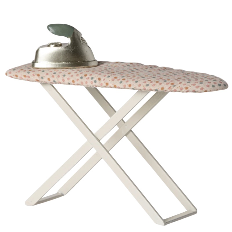 o make the laundry room fully equipped, you must have an iron and iron board. This set will make the play even more authentic. The iron board is made in metal and covered with unique Maileg fabric. It is perfect in size for the mouse family.DIMENSIONSHeigh