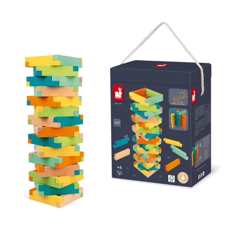 Discover endless possibilities! With an innovative stacking design and 4 bright colors, these notched blocks create sturdier structures. Develop hand-eye coordination, spatial awareness, and dexterity while learning physics in 3 dimensions. With 60 solid wood blocks and a portable storage container, the fun never ends on-the-go.