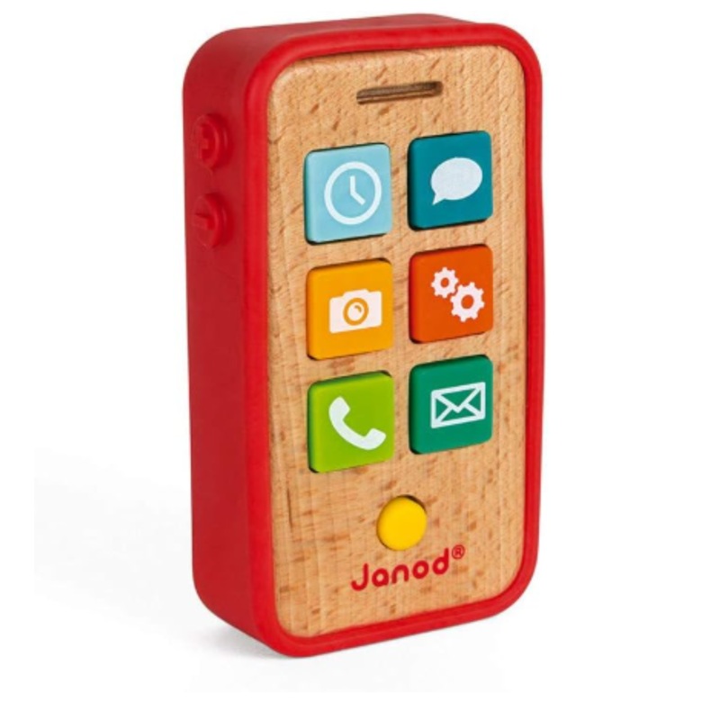 Condition: Open Box This wooden telephone allows toddlers and preschoolers to engage in imaginative play and mimic everyday activities. Crafted from solid beech wood with child-safe finishes, it also features buttons with sound effects for interactive fun.