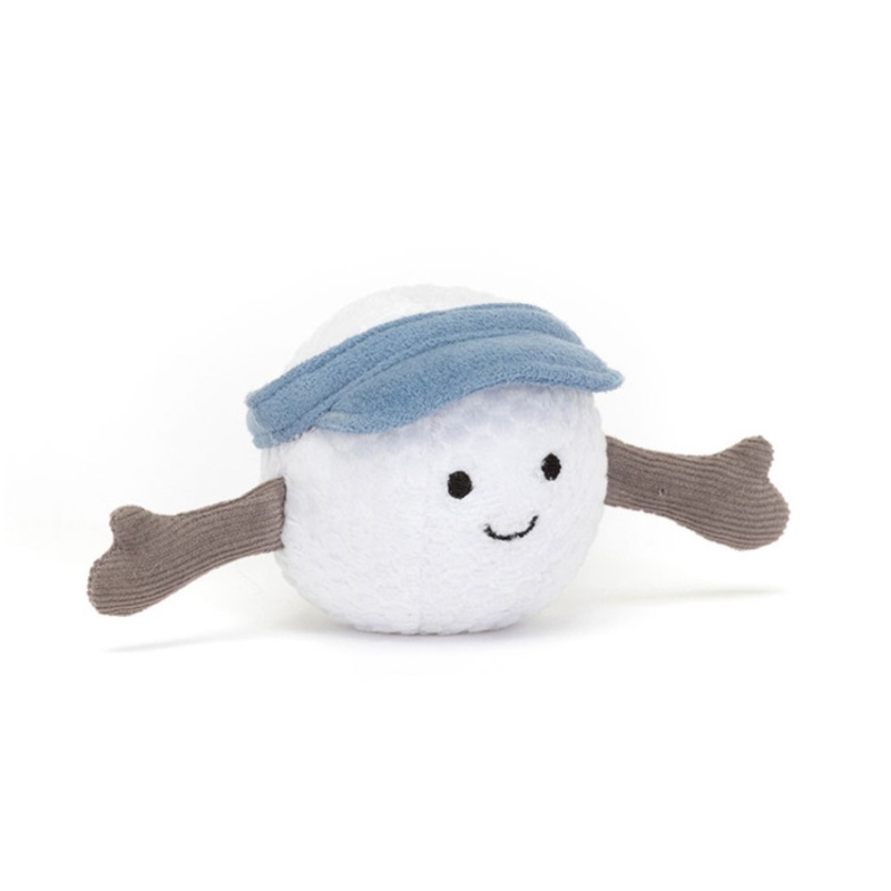 Great things most definitely come in small packages. Amuseables Sports Golf Ball is impeccably presented in a white textured fabric, sporting a suedette summer blue visor and stitched face. With a big smile and two thumbs up this is a hole in one gift for