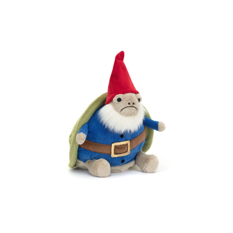 Timmy Turtle is a garden gem. Our favourite grumpy turtle wears a deep blue tunic and brown belt tucked into his green shell. With a red hat and fluffy cream beard, Timmy is the grumpiest gnome youll ever meet!