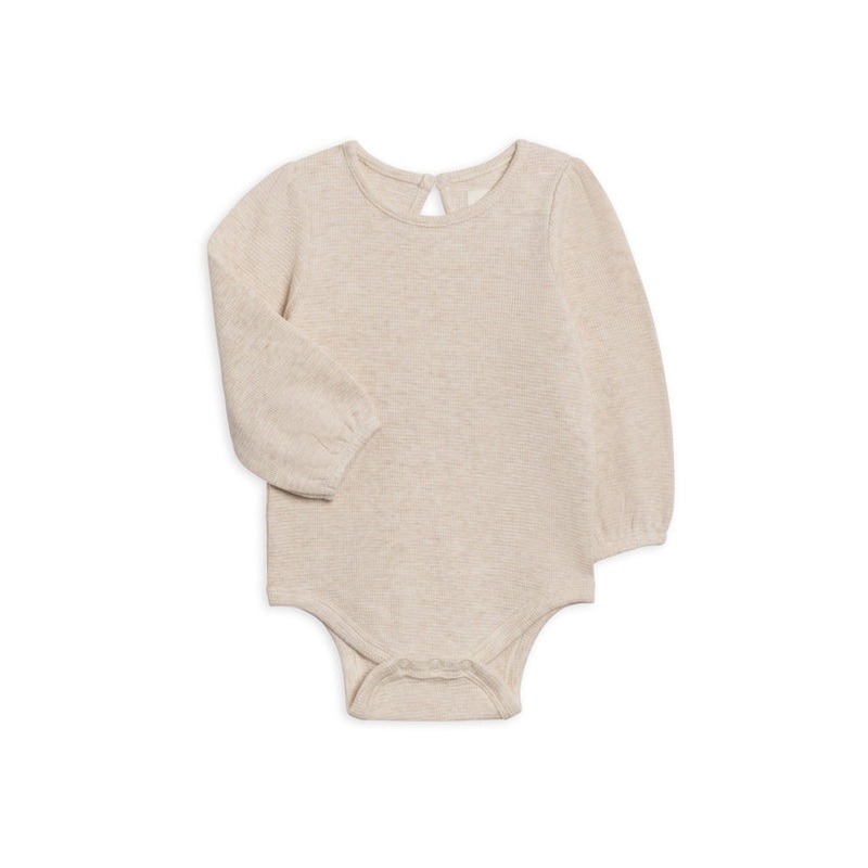 The Jill Waffle Long Sleeve Bodysuit is a cozy must-have for winter. With all-over waffle knit detail, modist puff gathered sleeve cap, crotch snap closures, and front buttons for easy dressing and diaper changing. Made of 100% Organic Cotton Waffle Knit F