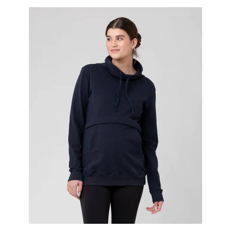 Your comfort level will be at an all-time high in the Joey Nursing Sweatshirt. This cozy sweatshirt features a funnel neck with drawstrings, a front pouch pocket, and a hidden horizontal zip for easy nursing access. Yes, please!