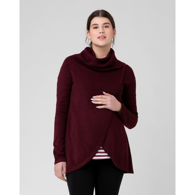 This knit is going to be on high rotation! Perfect for everyday wear, this piece was designed for both your maternity and nursing wardrobe. The fully-fashioned Cowl Neck Nursing Knit will keep your bump snug during pregnancy while the layered panels lift up quickly and easily, providing generous nursing access.