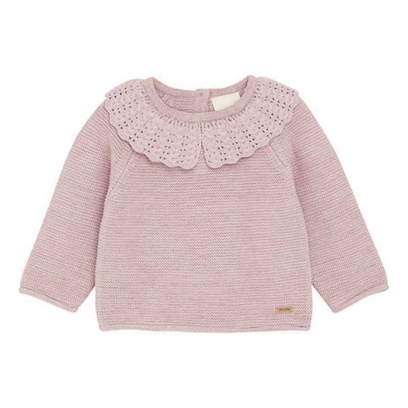 Adorable Minymo blouse in pink with gold glitter and in a knitted quality.The Minymo blouse has long sleeves, and in the neck opening there is a fine, crochet collar. The Blouse closes at the neck with buttons.Made with:- 85% cotton- 15% metal fibersStyle: