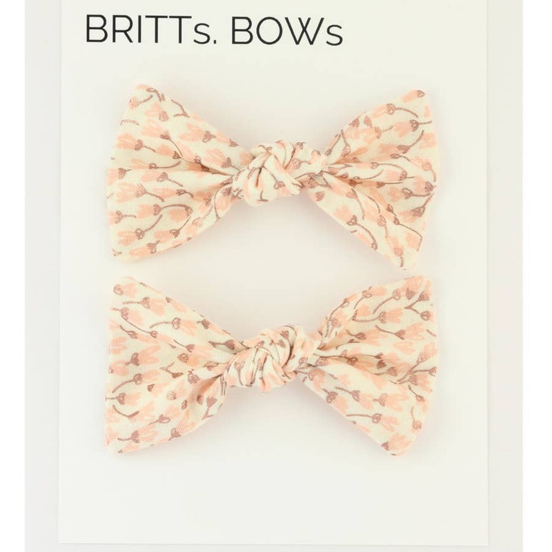 Bows are a must for every baby girl's wardrobe! Fabric bow measures 3.5 inches x 2.75 inches. Attached to alligator clips with teeth Hold tight in babes hair!