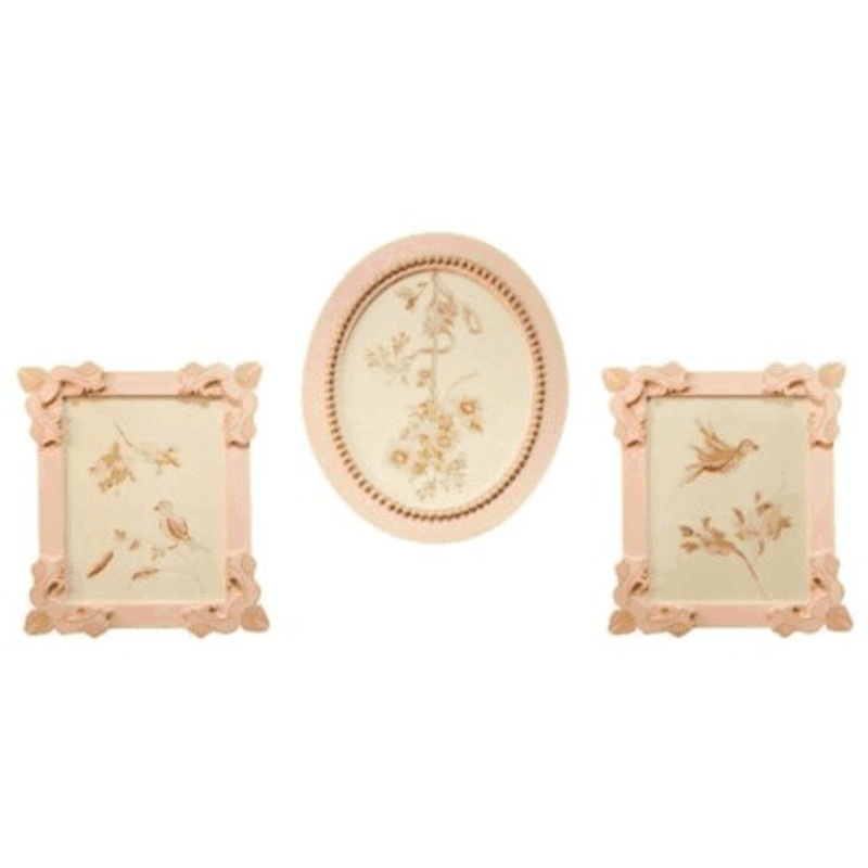 The Little Princess Wall Decor is a set of 3 decorative wall hangings. Two of the pieces measure 8 inches W x 10 inches H and the other piece is 10 inches W x 12 inches H.
