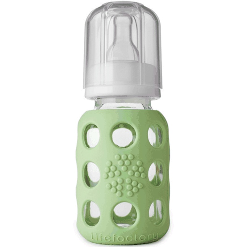 Lifefactory Glass Baby Bottle with Silicone Sleeve 4 oz in Spring Green