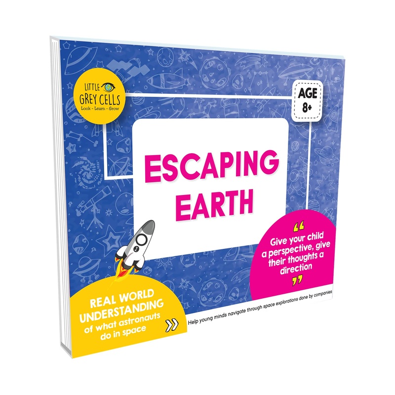 Life Cards by Little Grey Cells aim to enrich the thinking and exposure of ‘young adults’ for the age of 8 to 16. We wish to create a skeleton of real life concepts and germinate a series of questions about the world around us. With increasing exposure, these young minds need to be guided to the right kind of information. Little Grey Cells is here to simplify mature ideas which help them understand and question the way in which things work. Escaping Earth will take the child from space vehicles to how satellites work, from launching a rocket to living in the International Space Station, from Indias ISRO missions of Chandrayaan and Mangalyaan to space tourism by SpaceX, and other companies. Each life card is designed in a way that it can be internalized one at a time or together. Child can read them individually or with family; the cards will stimulate the grey cells.