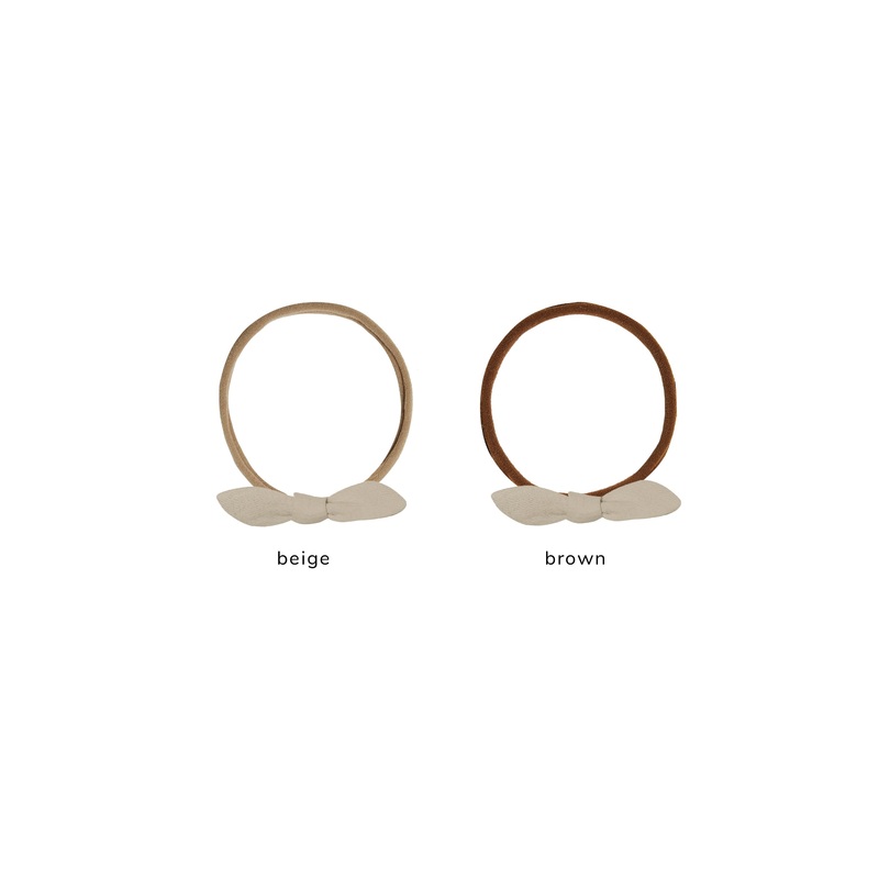 Little knot bow on a thin beige or brown headband in ‘oat’.