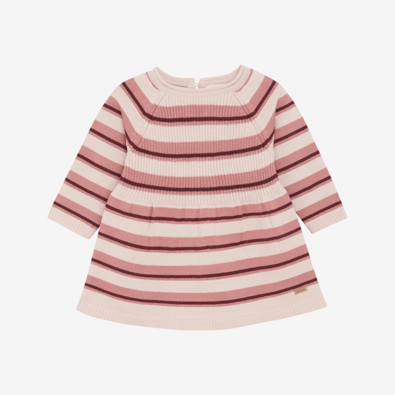 Striped long-sleeved knit dress from Minymo. The dress is made from an organic cotton blend. The dress has glitter details and closes with a button at the back.98% cotton, 2% metallic Fibres-knitStyle 113606, Color 5718