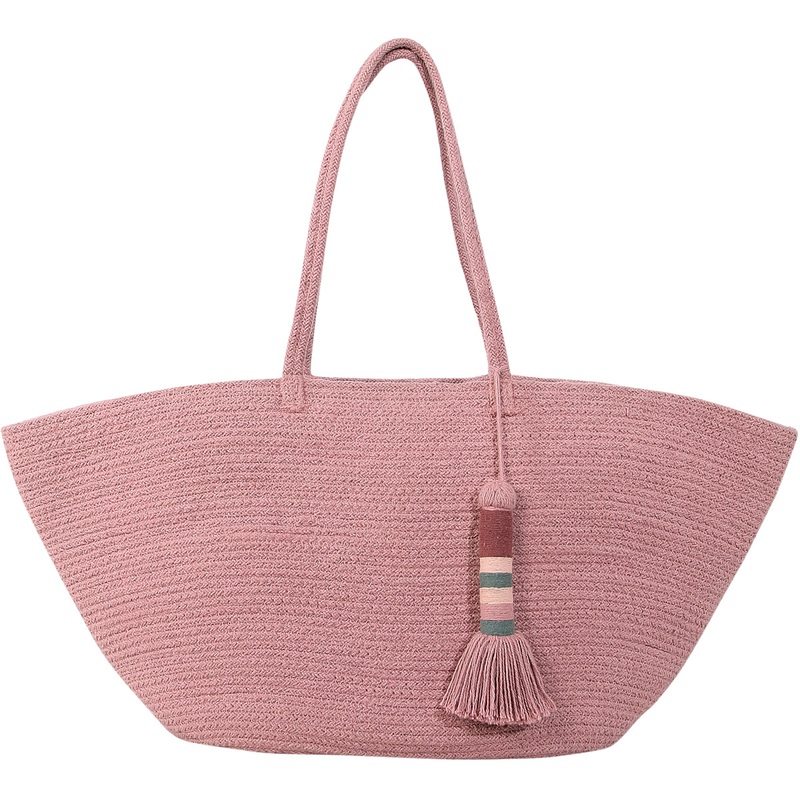 The Cotton Basket Cistell can be a perfect home decor element as a storage basket and could be a complement to carry with you to anywhere as a handbag. It can be used as home decor like a storage element for any kind of objects like books, magazines, games, even though as a flowerpot. It has handles in matching Ash Rose color and a handmade multi-color tassel attached. SIZE: 1′ 2″ X 2′ 2″
