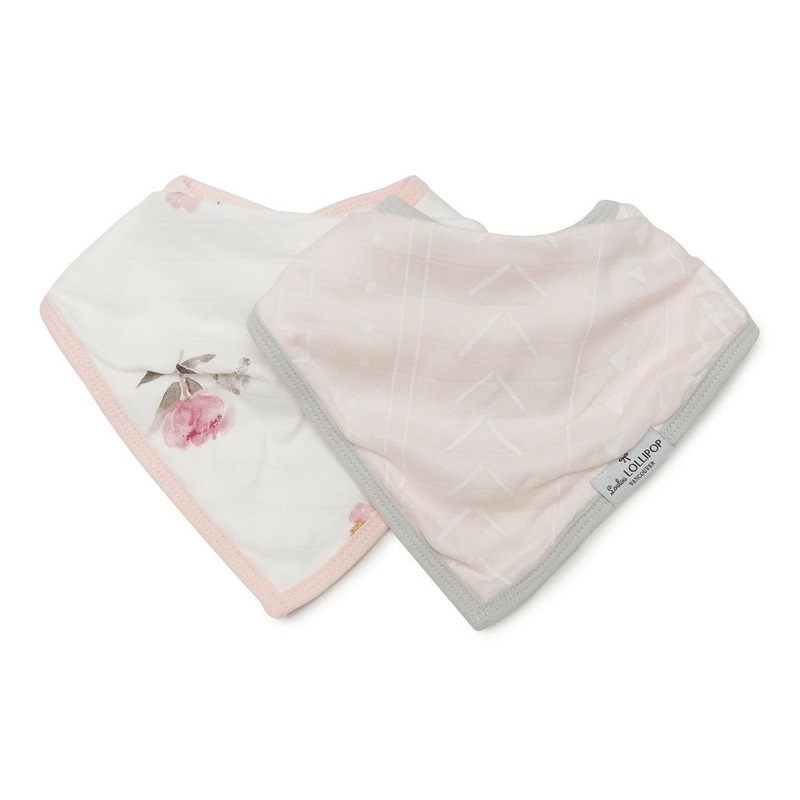 Loulou Lollipop Luxe Muslin Bandana Bib Set – Pink Peony