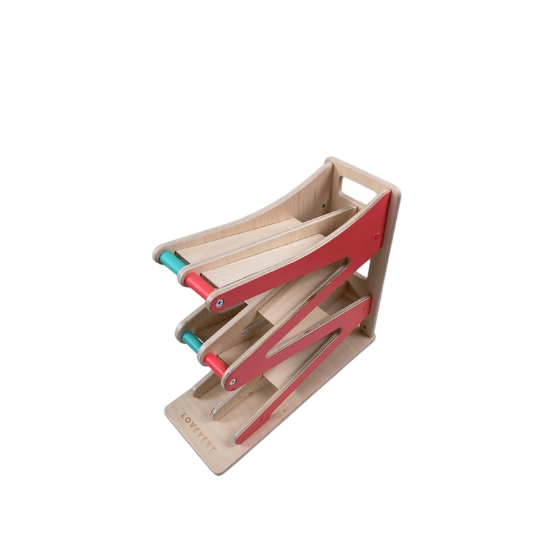 Originally part of the Lovevery Play Kit: The Pioneer, this cute wooden ramp features two cars and winding track will help toddlers develop their fine motor skills.
