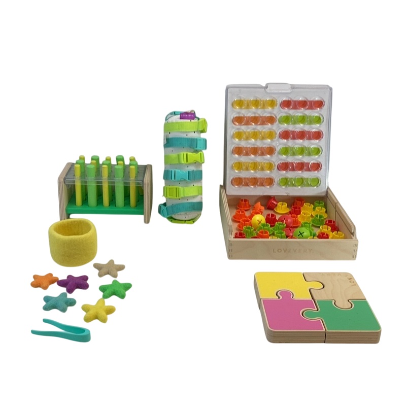 Condition: Gently Used The Thinker Kit is designed for ages 22-24 months and is set up to start guiding children in confident play! With great items that encourage fine motor skills and more. This kit of toys will get your little problem solver thinking.