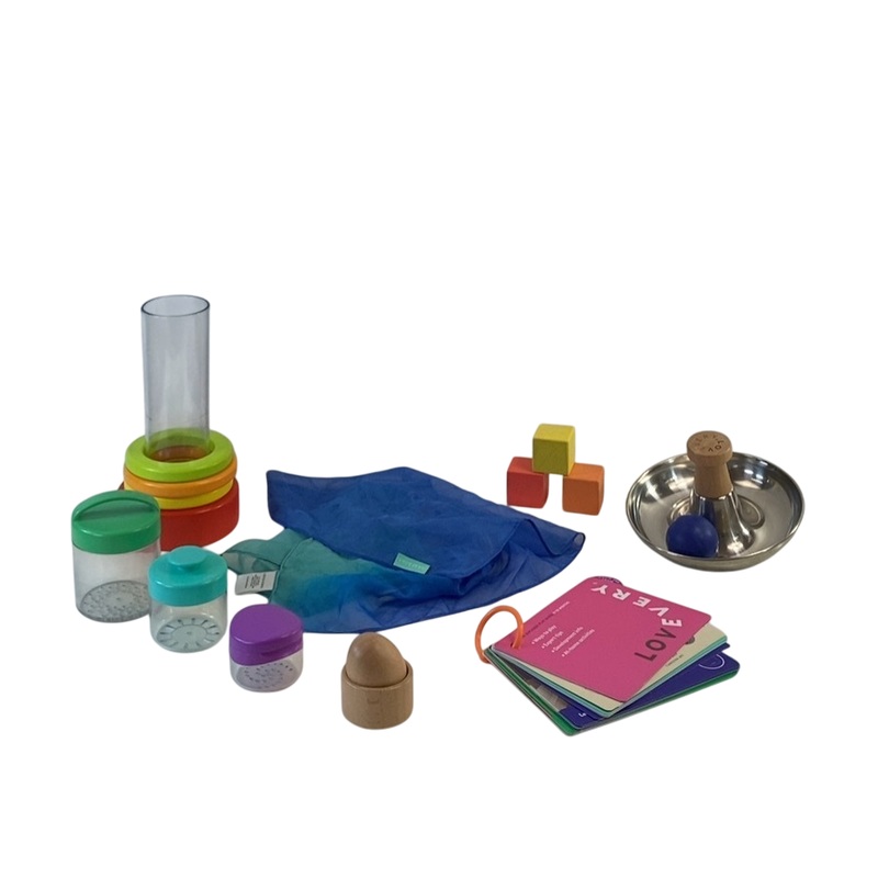 Condition: Gently Used This Montessori inspired play kit is designed for ages 9-10 months in order to help your baby explore things like object permanence, shapes, feelings,and the concepts. It features toys designed to build coordination and concentration