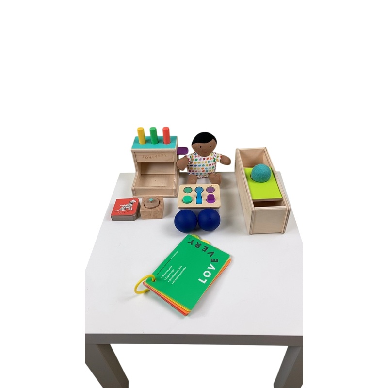 The Thinker Kit is designed for ages 11-12 months and is set up to start guiding children in imaginative play! With great items like a first doll, introductory puzzles, and more. This kit of toys will get your little problem solver thinking.