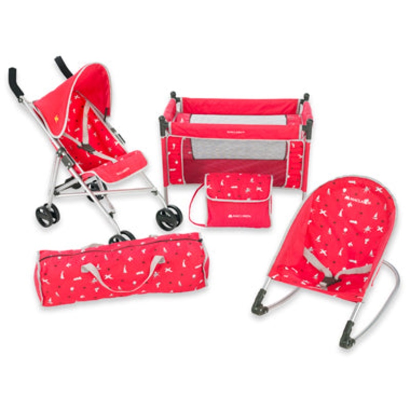 Even “make believe” babies deserve to be pampered. The Dandelion Toy Quest Activity Center does it with style, in this lovely fabric print. Dolls up to 16″ will be right at home in the umbrella stroller with a 21″ handle height, a comfy rocker, a folding travel crib with its own carry case, and a travel bag to keep “mommy” organized.Contains pushchair, travel cot, daytime rocker & matching travel bag