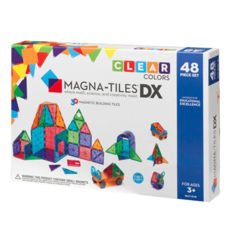 These tactile, colorful Magna-Tiles are sized just right and easy to use, whether creating designs on a flat surface or building in 3-D. Basic shapes are learned through play. Magna-Tiles develops patterning, shape recognition, building and motor skills. U