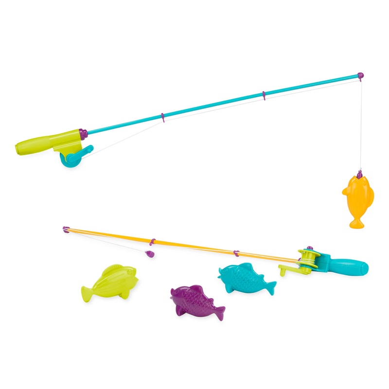 Reel in the fun with Battat's Magnetic Fishing Set! Drop all 4 of these brightly colored fish in the tub and grab your fishing toy pole! Caught one? Just reel 'em in with the functional wind-up action reels! Playing outside on a hot summer day? Pour water