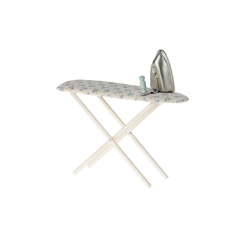 Our Iron and Ironing Board are perfect for our dollhouse. The new design includes a beautiful blue floral fabric on the board, with metal legs that actually fold up like a real ironing board. Measurements: Board: 8" x 5.5", Iron: 2.5"x1.5"x2"Materials incl