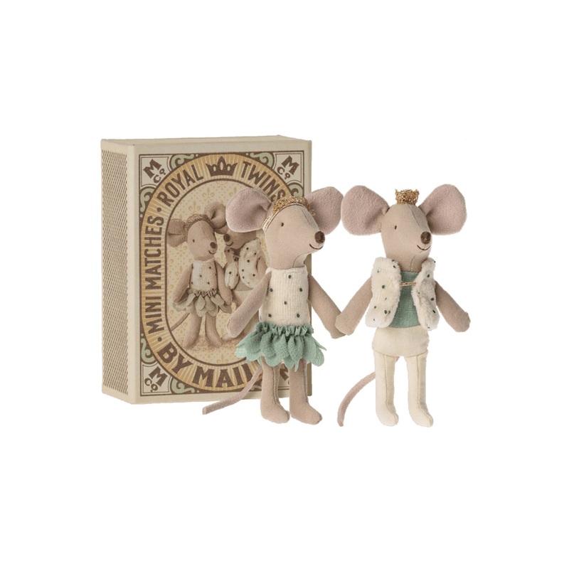 Make way for the royal heirs! This adorable duos outfits include complimenting accents, so they can always make a grand entrance together. They also share a customized matchbox that has their portraits printed on the top, how fancy! Our darling Royal Twins