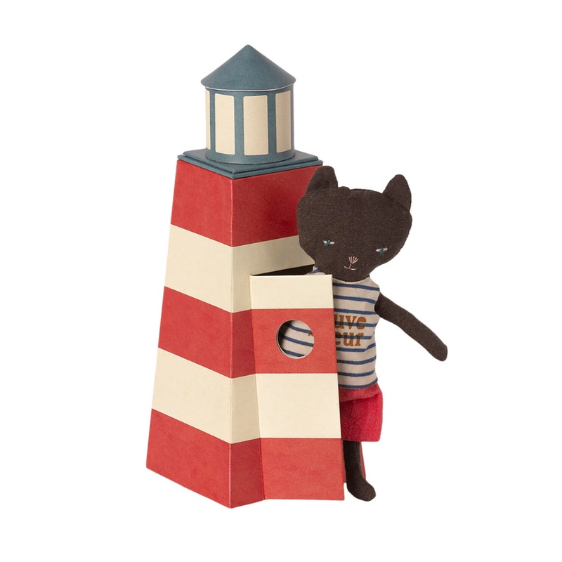 Vacation time! All popular beaches have their own lifeguard. This cat is watching over all the swimmers. In the nighttime, the tower can change into a lighthouse that guides ships in the right direction.