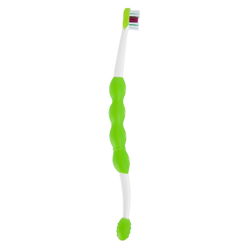 • Soft, rounded bristles clean first teeth and remove plaque and bacteria