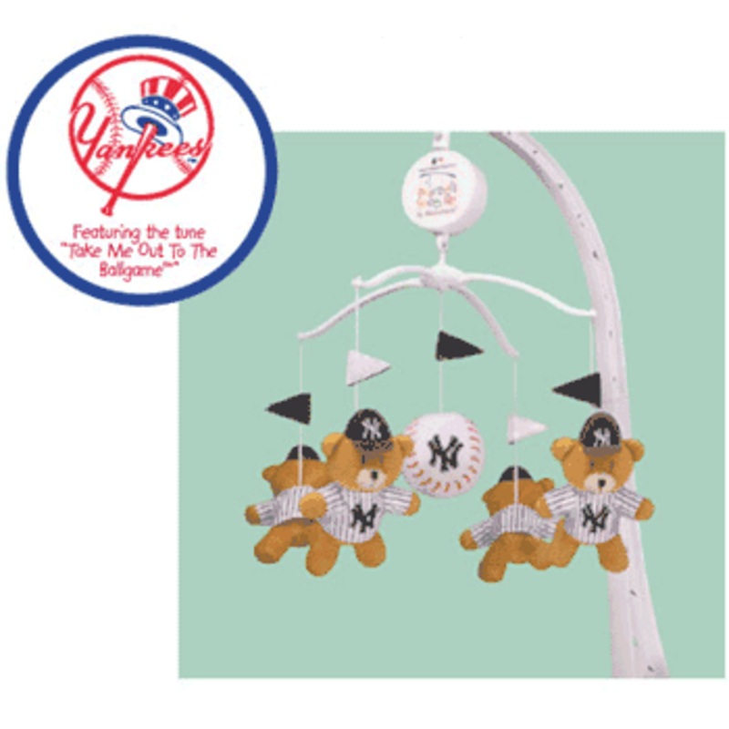 Product Features: ? Four bears wearing team logo ? Baseball dangling from center of mobile ? Plays tune “Take Me Out To The Ballgame” ? Can be crib or wall mounted ? Crib mount from birth to 5 months ? Wall mount from 5 months on