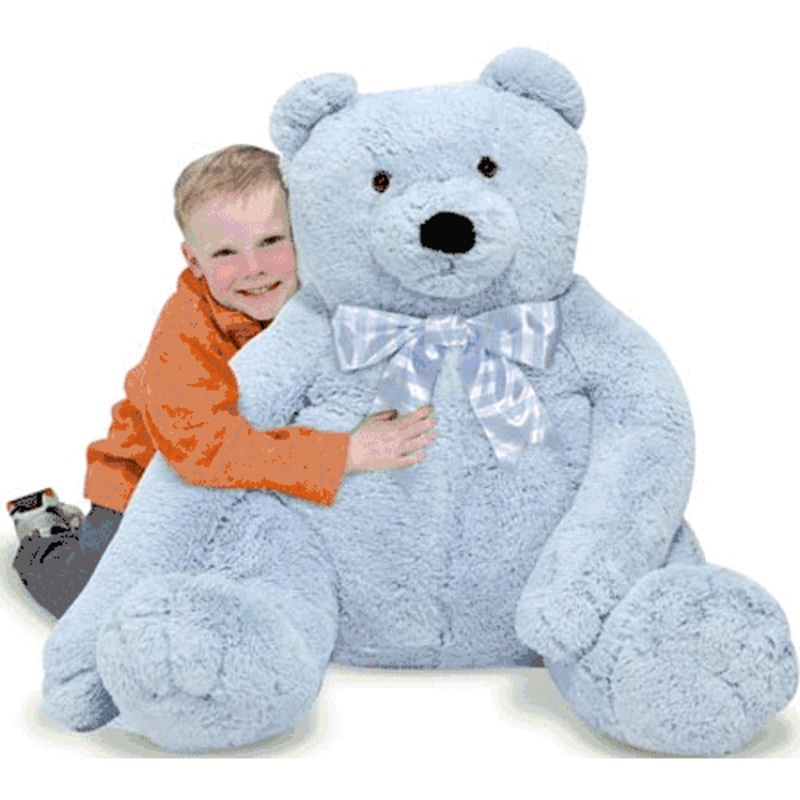Bear lovers will delight in hugging and tumbling with this super-soft, oversize bear, designed with quality construction for lots of lovin! With his friendly expression and soft, baby-blue fur, this bear will become a favorite companion and confidant. Dime