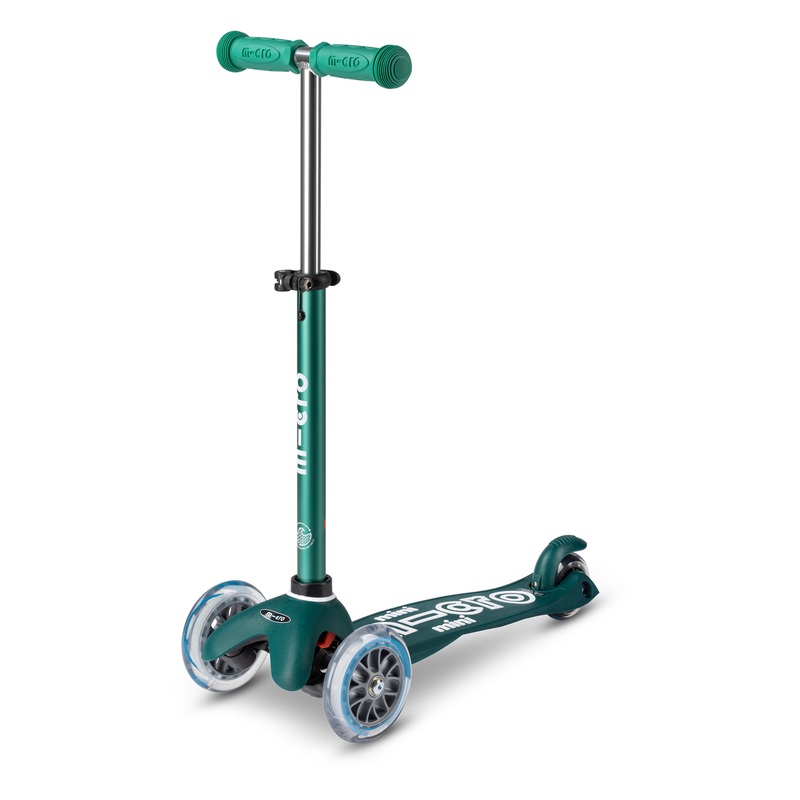 Explore while protecting the planet with our new ECO-Collection, created with recycled, discarded fishing nets.Micro's 3-wheeled Mini Deluxe scooter utilizes a Lean-To-Steer design, offering a stable ride that supports toddlers and small children as they m