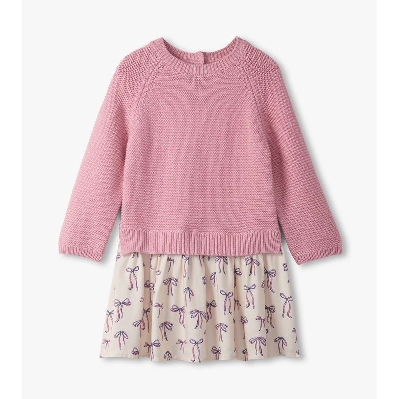 Mixed Media Sweater Dress – Painterly Bows 12-18m