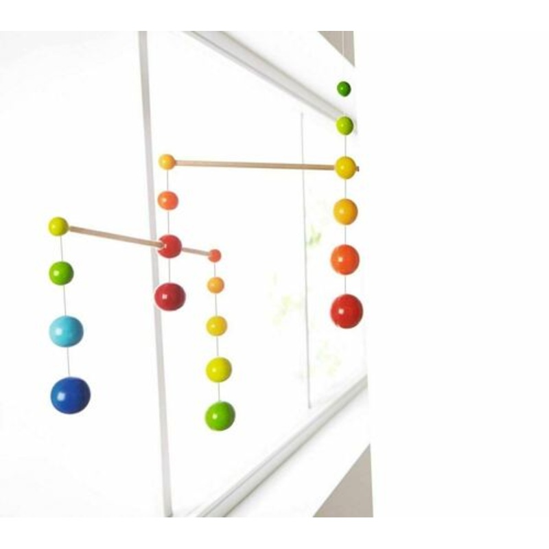 What an eye catching design! It's not often a nursery decor item can also be a conversation piece. This gorgeously-designed wooden mobile is sure to delight both little boys and little girls. Suspend it from above the bassinet or changing table and watch a