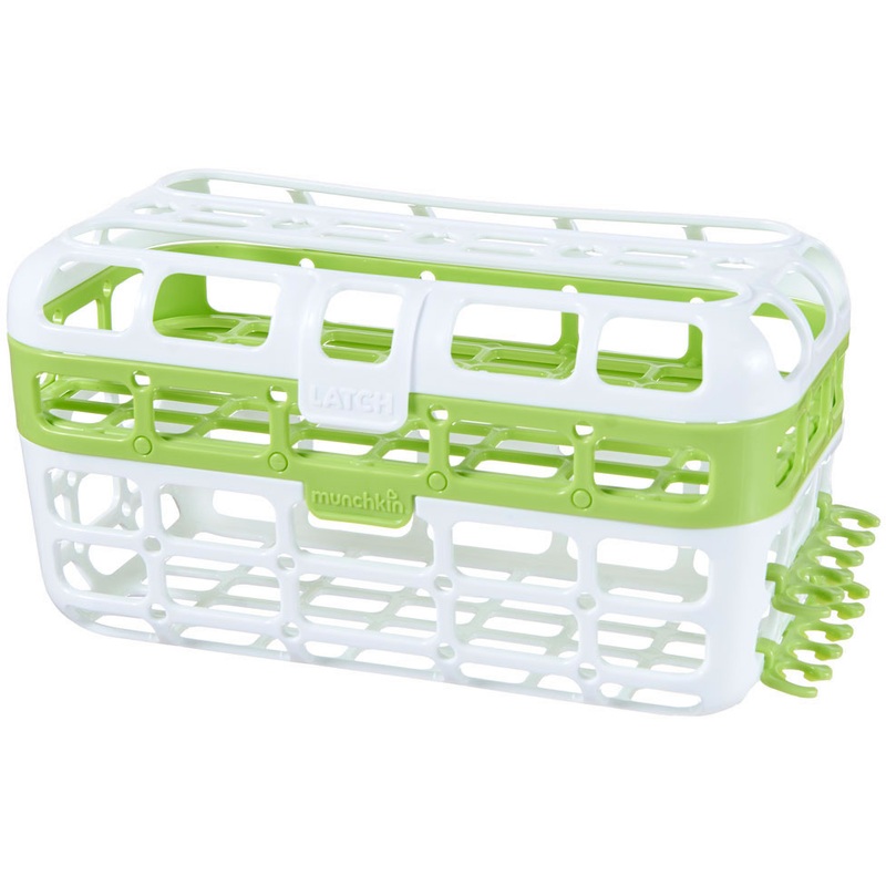 With all the cups, bottles, pacifiers, and straws that hit the ground on any given day, you have a large pile of baby-related items to wash every single night. Designed especially for wide mouth bottles and nipples, the Munchkin High Capacity Dishwasher Basket gives you the day off from bottle washing duty! With its jumbo size, you can fit all of your little one’s baby items and bottle parts into the basket and run them through the dishwasher without worrying that you’ll lose track of them once the wash cycle ends. This handy dishwasher caddy features a patented straw cleaning rack on the side to hold straws upright and firmly in place for a thorough clean. Flip the lid open and place pacifiers, spoons, bottle sealing discs, valves, caps and other small parts into the basket. Easily press nipples into the nipple sanitizing lid, snap into place, and you are set to wash without worry! Just load up the basket and let your dishwasher do the dirty work while you get down to business spending time with your little one.