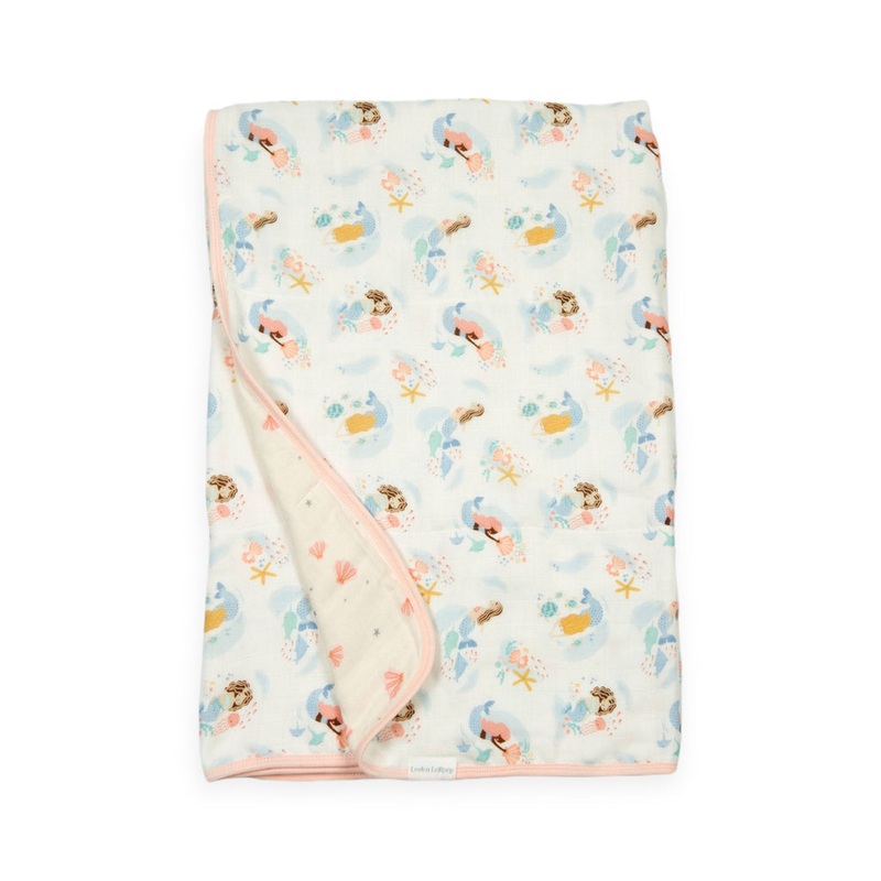 This muslin quilt is made from four layers of bamboo and cotton muslin fabric and offers the perfect amount of breathable warmth and coziness to keep the baby comfortable and relaxed. This large reversible blanket is lightly quilted and features hand-drawn